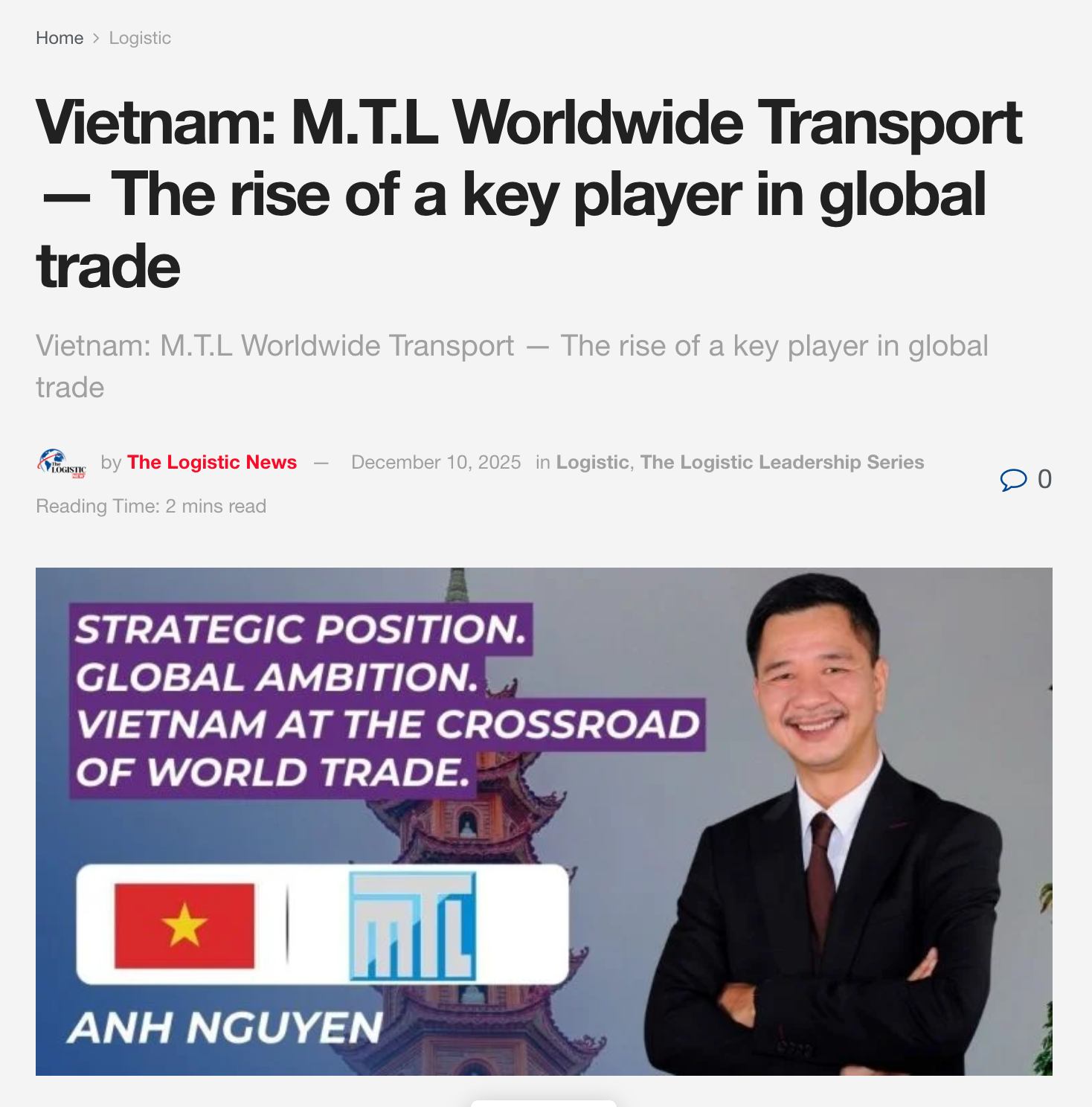 The Logistic News recently published an in-depth analysis highlighting Vietnam’s rapid transformation into a strategic logistics hub. Within this context, M.T.L Worldwide Transport was recognized as one of the key representatives of the new generation of Vietnamese logistics providers, contributing to the country’s growing influence in global supply chains.
